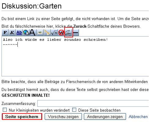Wenn Sie allgemein über Flerschemerisch.de diskutieren möchten, wählen Sie aus dem Hauptmenü "Gemeinschafts-Portal", klicken dort auf "Bearbeiten" und editieren diese Seite in gleicher Weise.